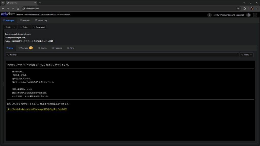 メールを送るように設定すれば、指定した宛先にはこのようなメールが届きます。メールの件名や宛先、本文は、これもまた変数などを使って自由に記述できます(ただし本文は Markdown フォーマットではなく HTML でベタ書きが必要です)。